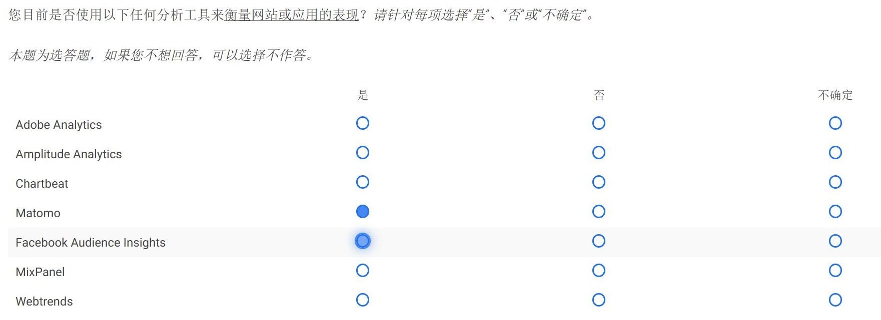 如果有较多上述国家的访客,将不得不采用其它统计,先看下 Google 自己的调查中列举了哪些吧: